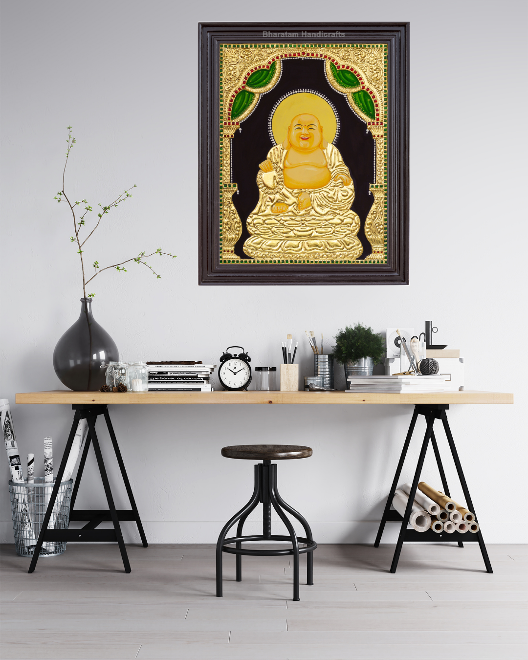 Experience the cultural and spiritual tradition of India with the Buddha Tanjore Painting  Handcrafted by skilled traditional artists, this painting brings auspiciousness and beauty to any home.