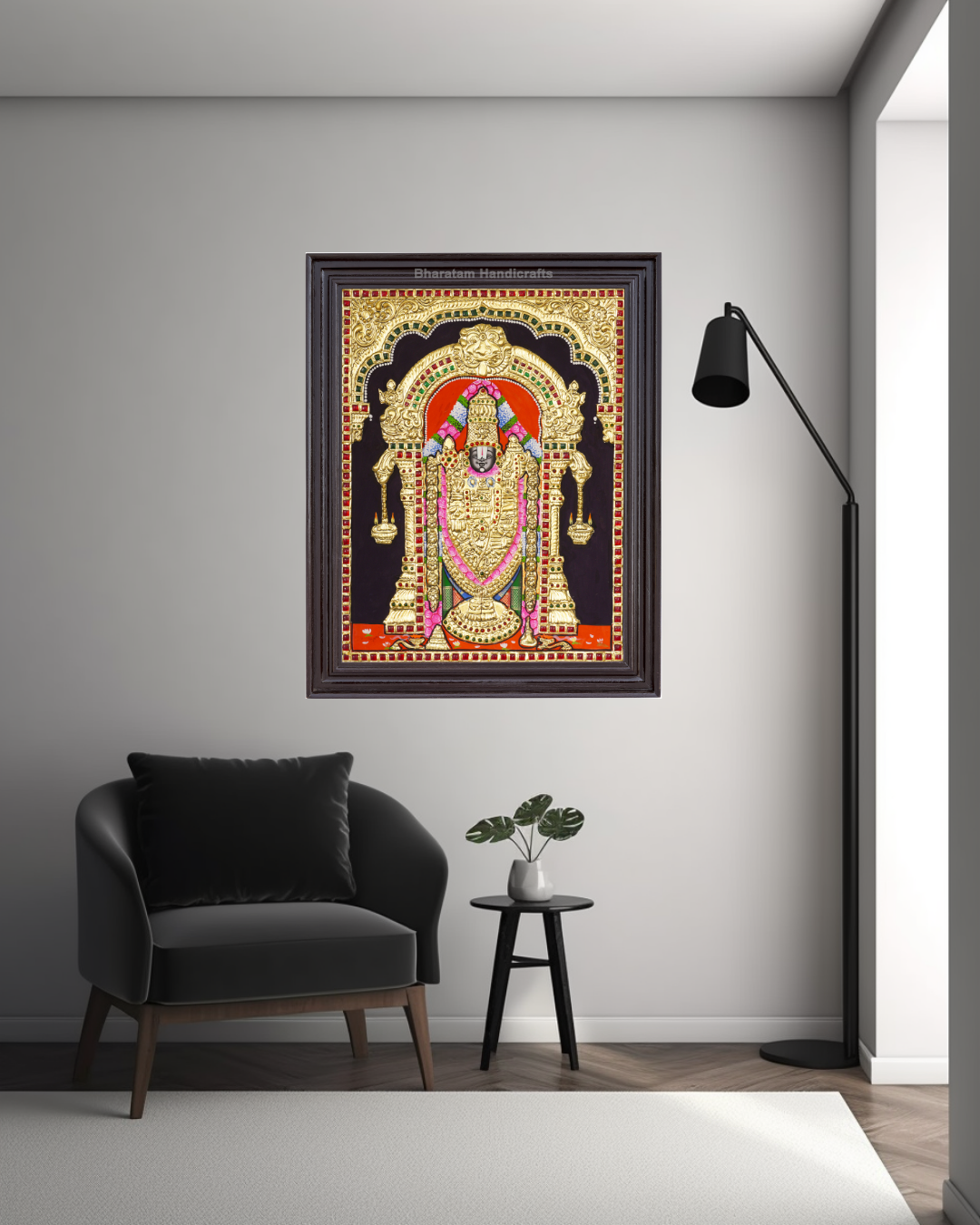 Experience the cultural and spiritual tradition of India with the Balaji Tanjore Painting   Handcrafted by skilled traditional artists, this painting brings auspiciousness and beauty to any home.