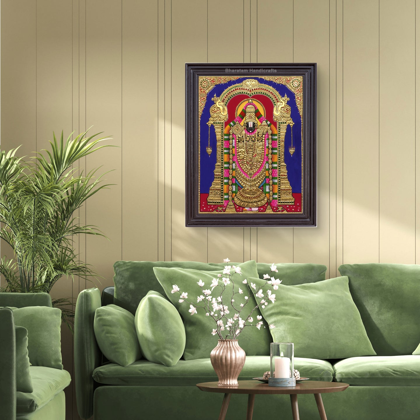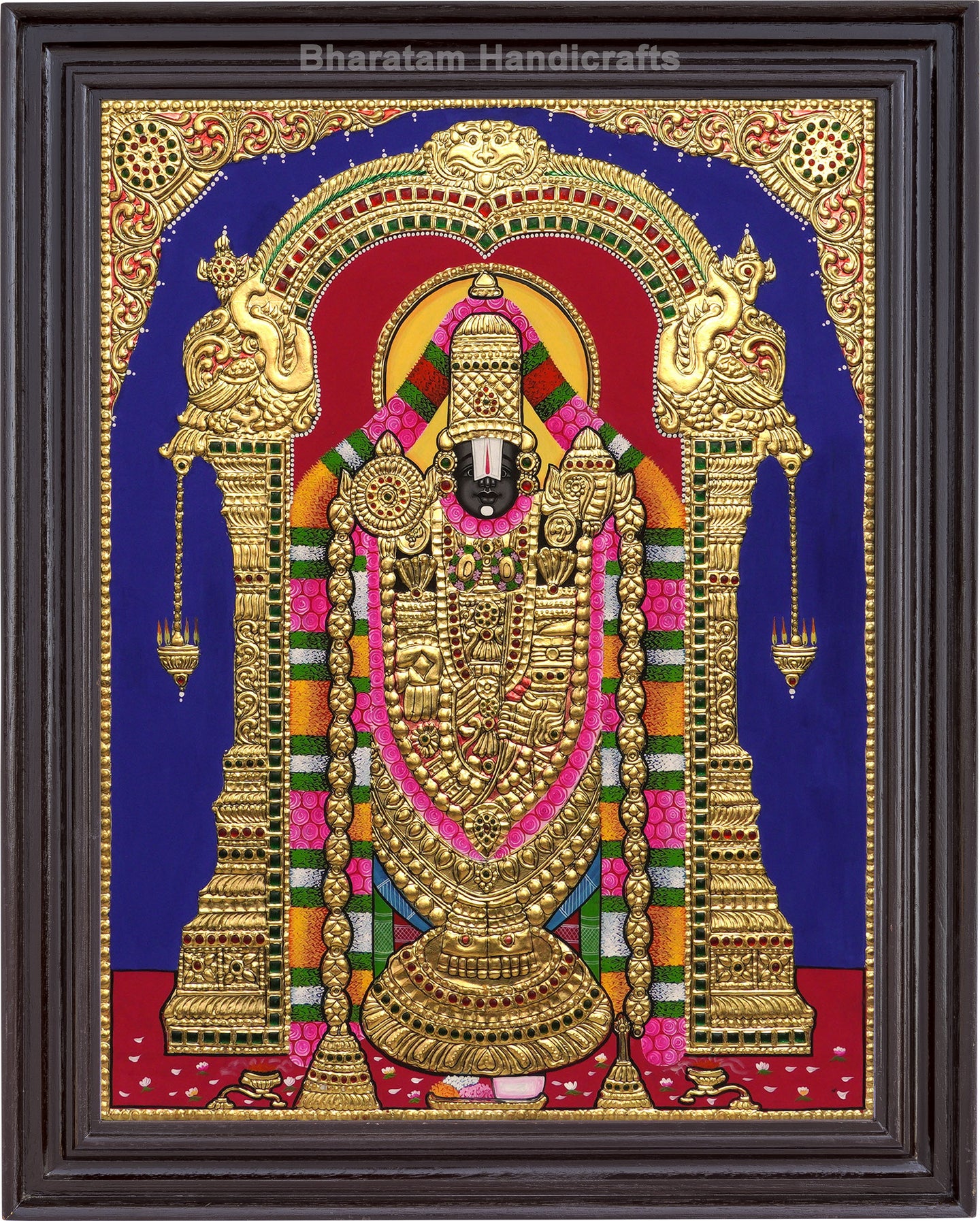 Experience the cultural and spiritual tradition of India with the Balaji Tanjore Painting. Handcrafted by skilled traditional artists, this painting brings auspiciousness and beauty to any home.