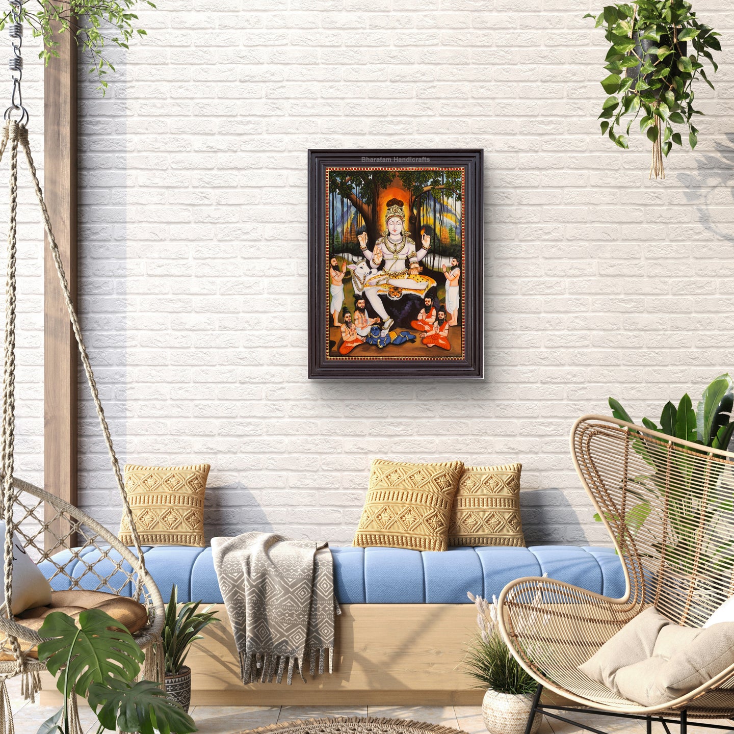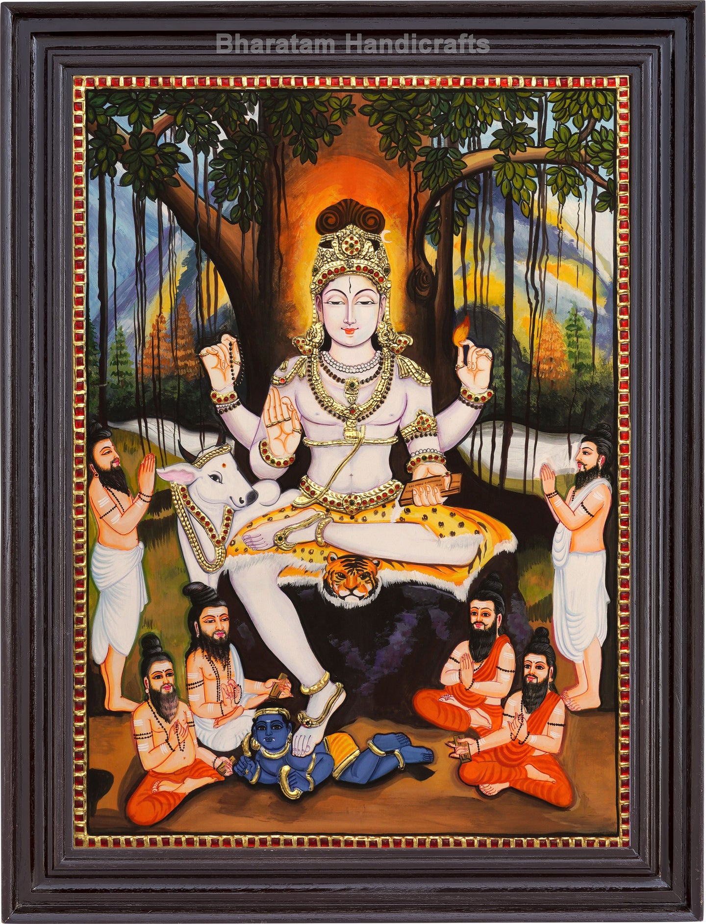 Experience the cultural and spiritual tradition of India with the Dakshinamurthy  Tanjore Painting. Handcrafted by skilled traditional artists, this painting brings auspiciousness and beauty to any home.