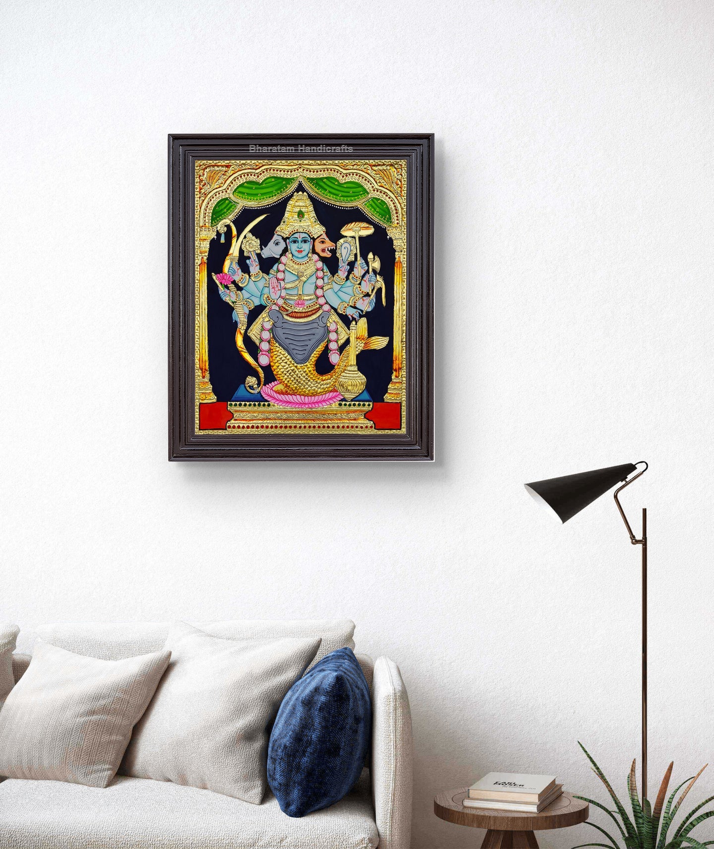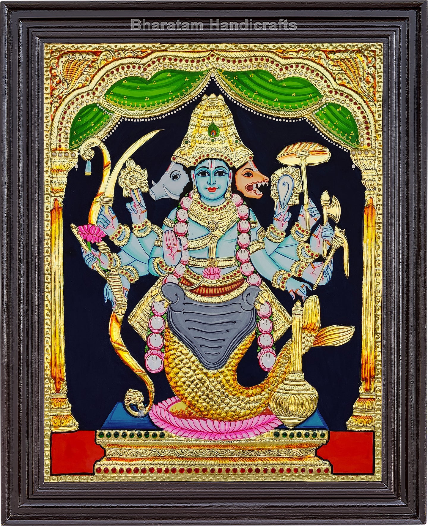 Experience the cultural and spiritual tradition of India with the Dasavatharam Tanjore Painting. Handcrafted by skilled traditional artists, this painting brings auspiciousness and beauty to any home.