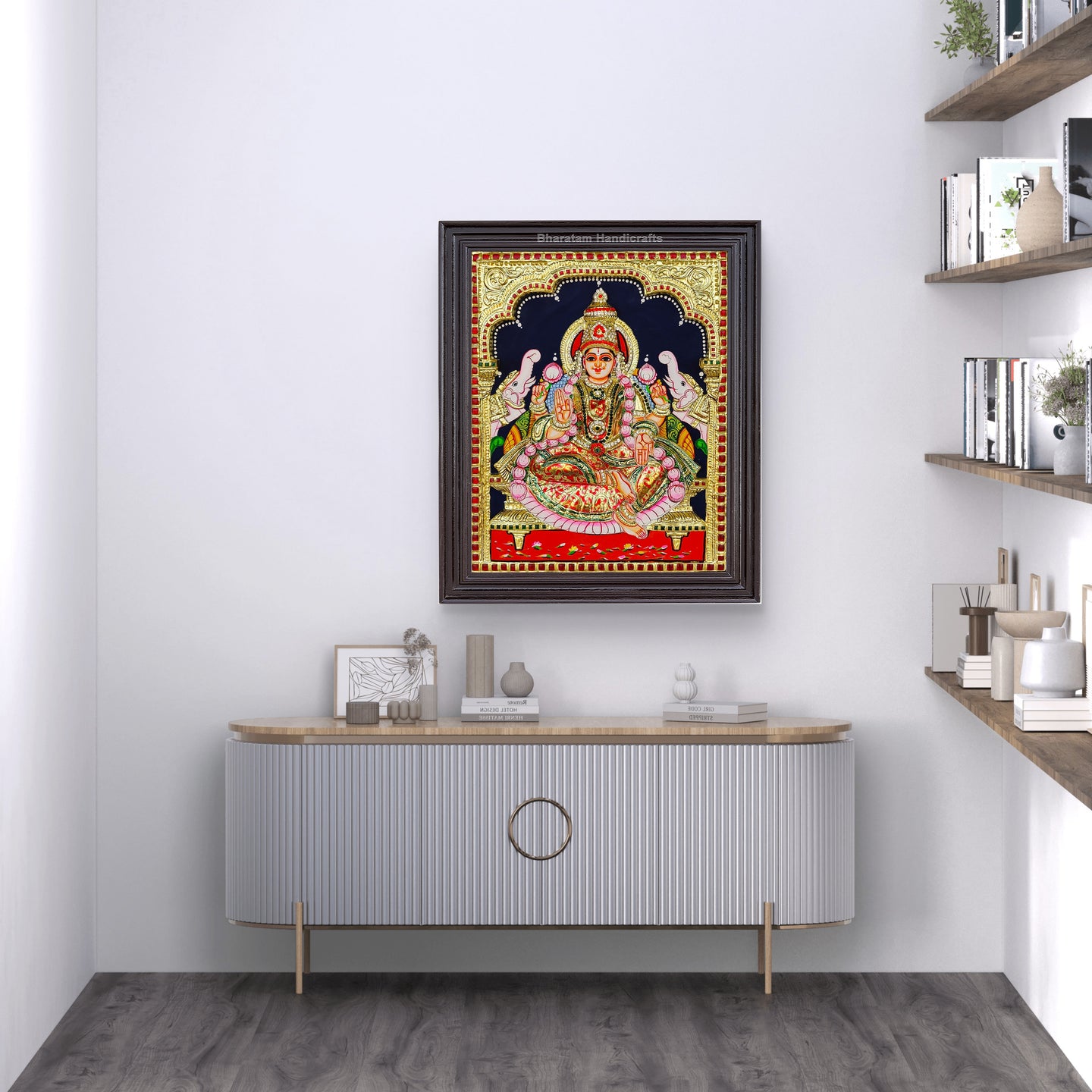 Gajalakshmi is a revered goddess in Hindu mythology, representing wealth, prosperity, and abundance. She is often depicted as a form of Lakshmi, the goddess of wealth, and is particularly associated with the auspiciousness of elephants, which are symbols of royalty and prosperity.