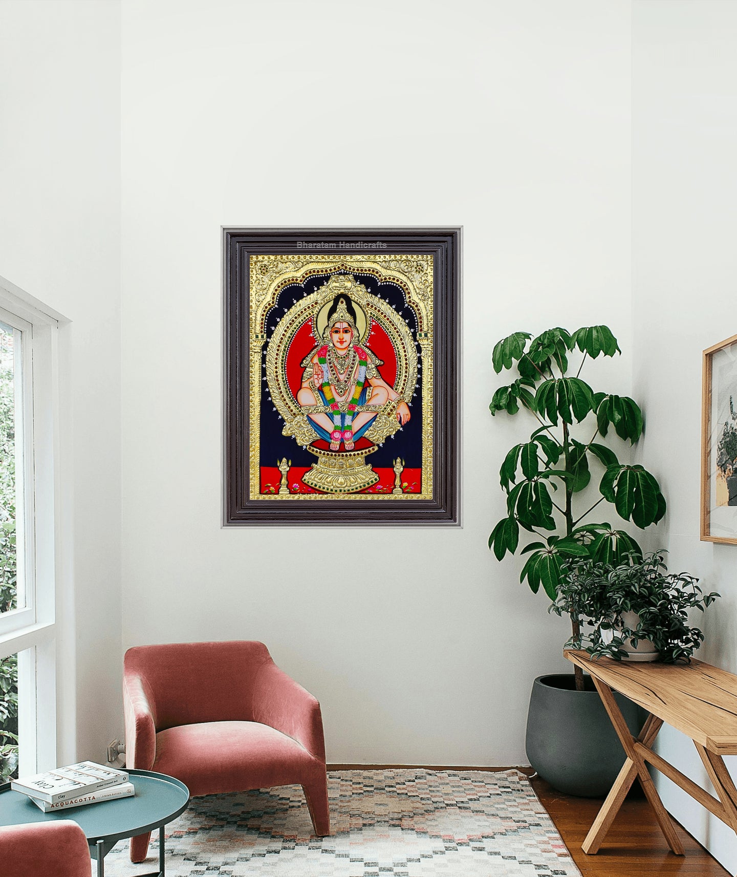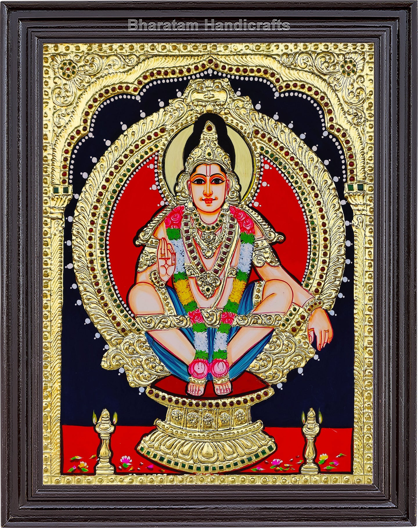 Experience the cultural and spiritual tradition of India with the Ayyappan Swamy Tanjore Painting  Handcrafted by skilled traditional artists, this painting brings auspiciousness and beauty to any home.