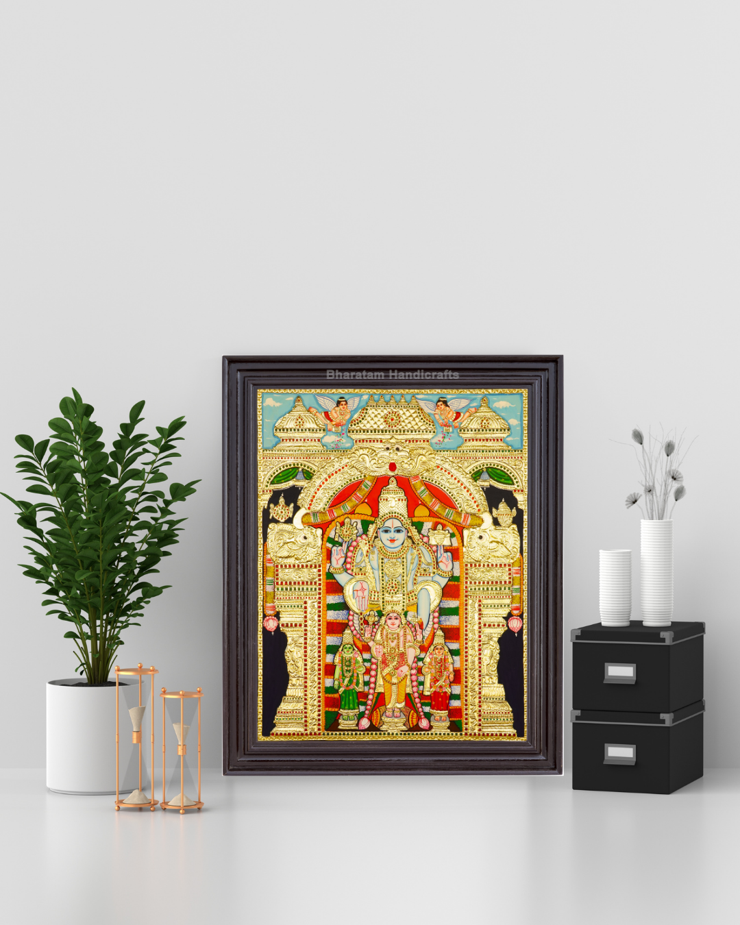 Experience the cultural and spiritual tradition of India with the Gunaseela Perumal Tanjore Painting Handcrafted by skilled traditional artists, this painting brings auspiciousness and beauty to any home.