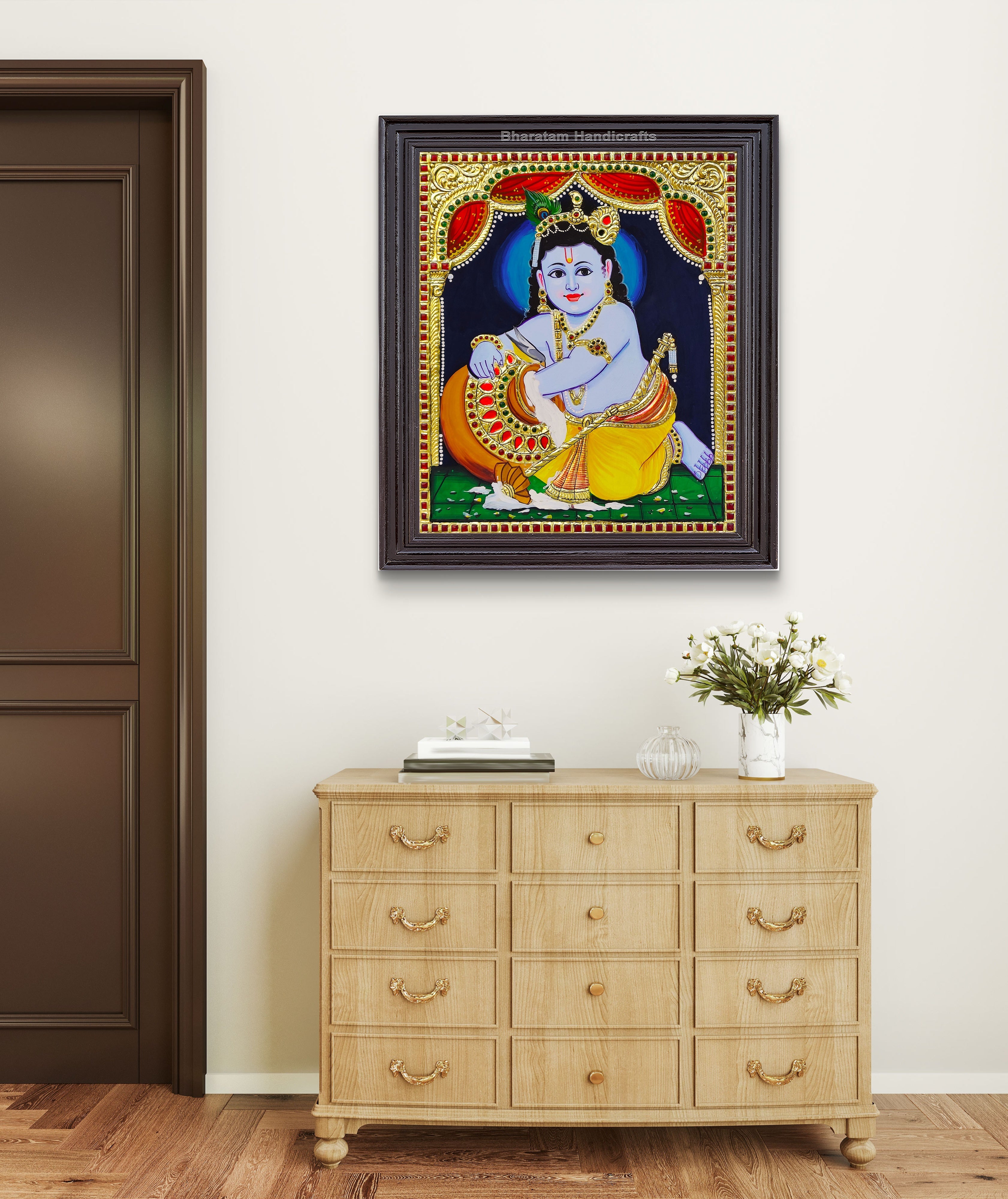 Butter Krishna, or "Makkhan Chor" (the butter thief), refers to the beloved childhood form of Lord Krishna, renowned for his playful and mischievous antics, especially his fondness for butter and dairy products. Importance of Tanjore...Regular price From Rs. 10,000.00