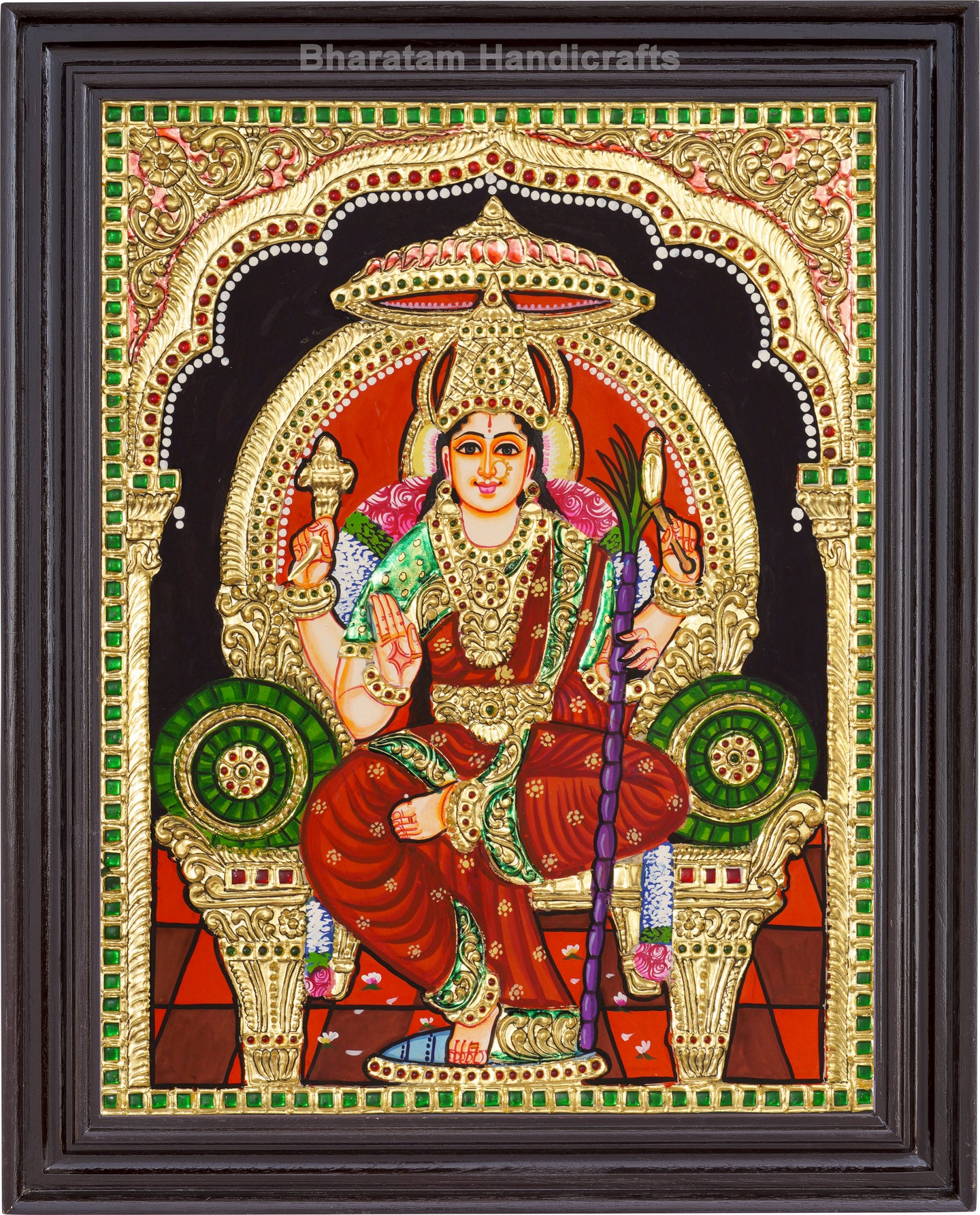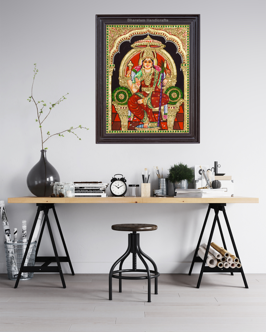 Experience the cultural and spiritual tradition of India with the Lalitha Devi Tanjore Painting  Handcrafted by skilled traditional artists, this painting brings auspiciousness and beauty to any home.