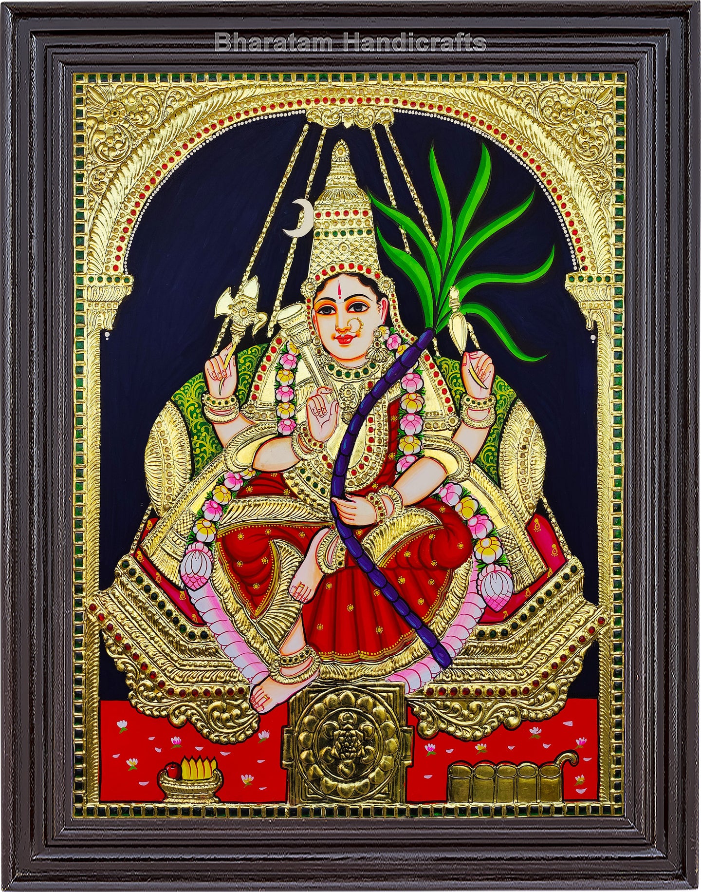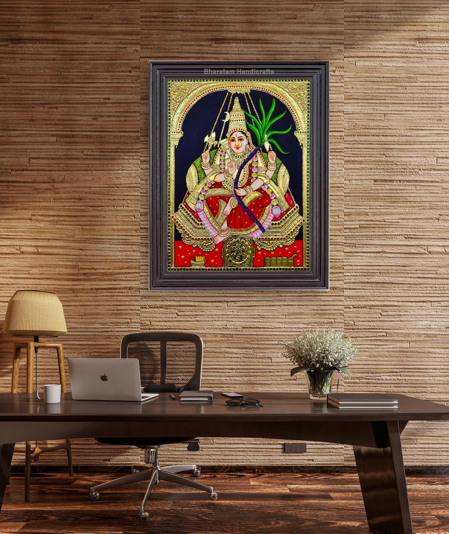 Experience the cultural and spiritual tradition of India with the Lalitha Devi Tanjore Painting. Handcrafted by skilled traditional artists, this painting brings auspiciousness and beauty to any home.