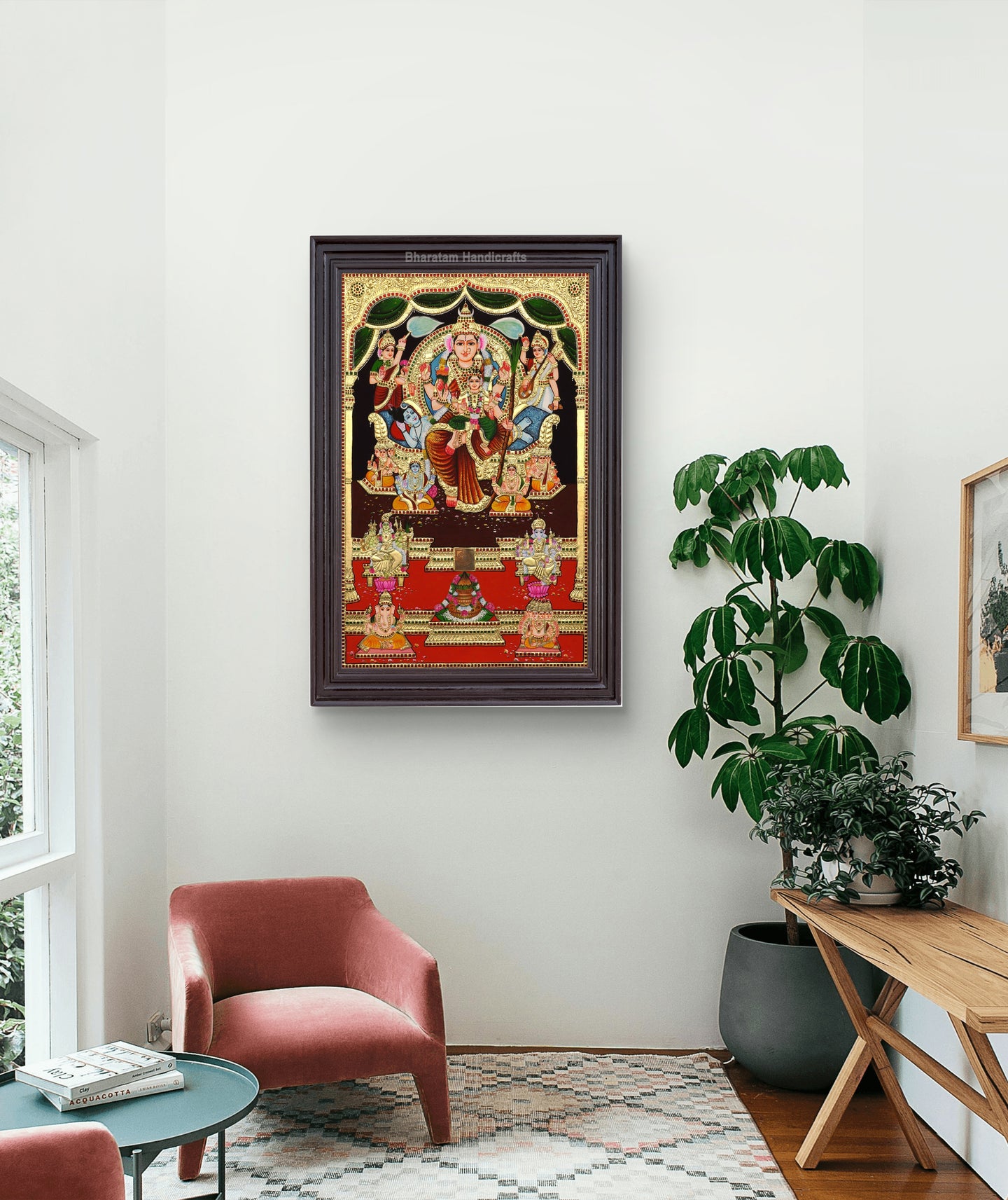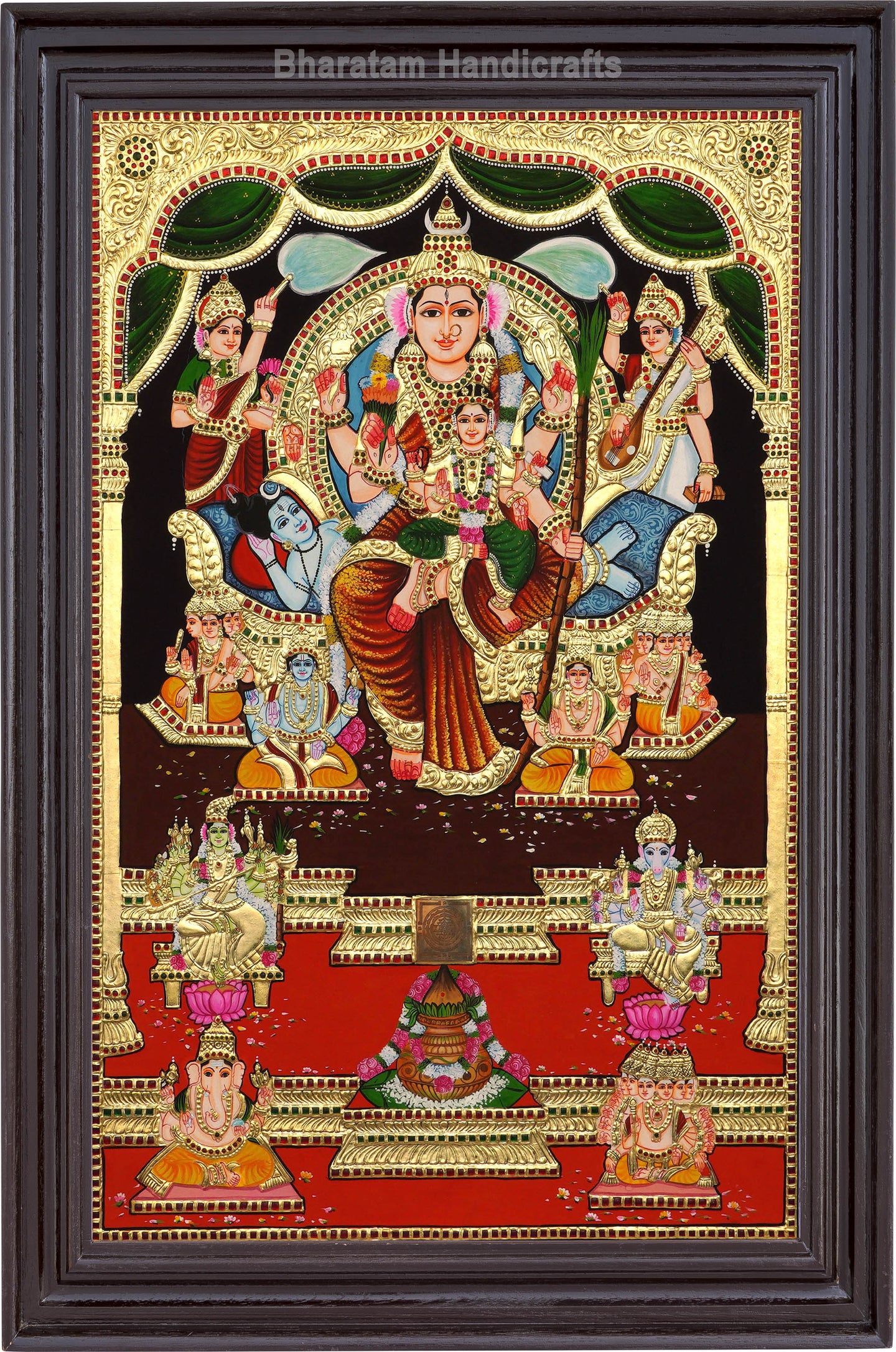 Experience the cultural and spiritual tradition of India with the Raja Rajeshwari Tanjore Painting. Handcrafted by skilled traditional artists, this painting brings auspiciousness and beauty to any home.