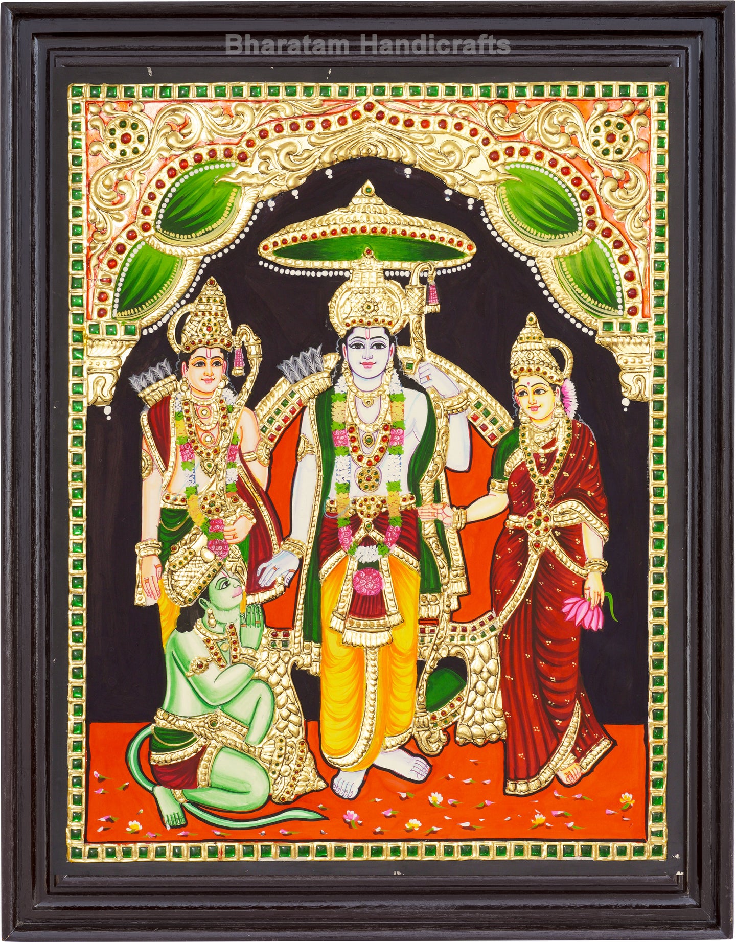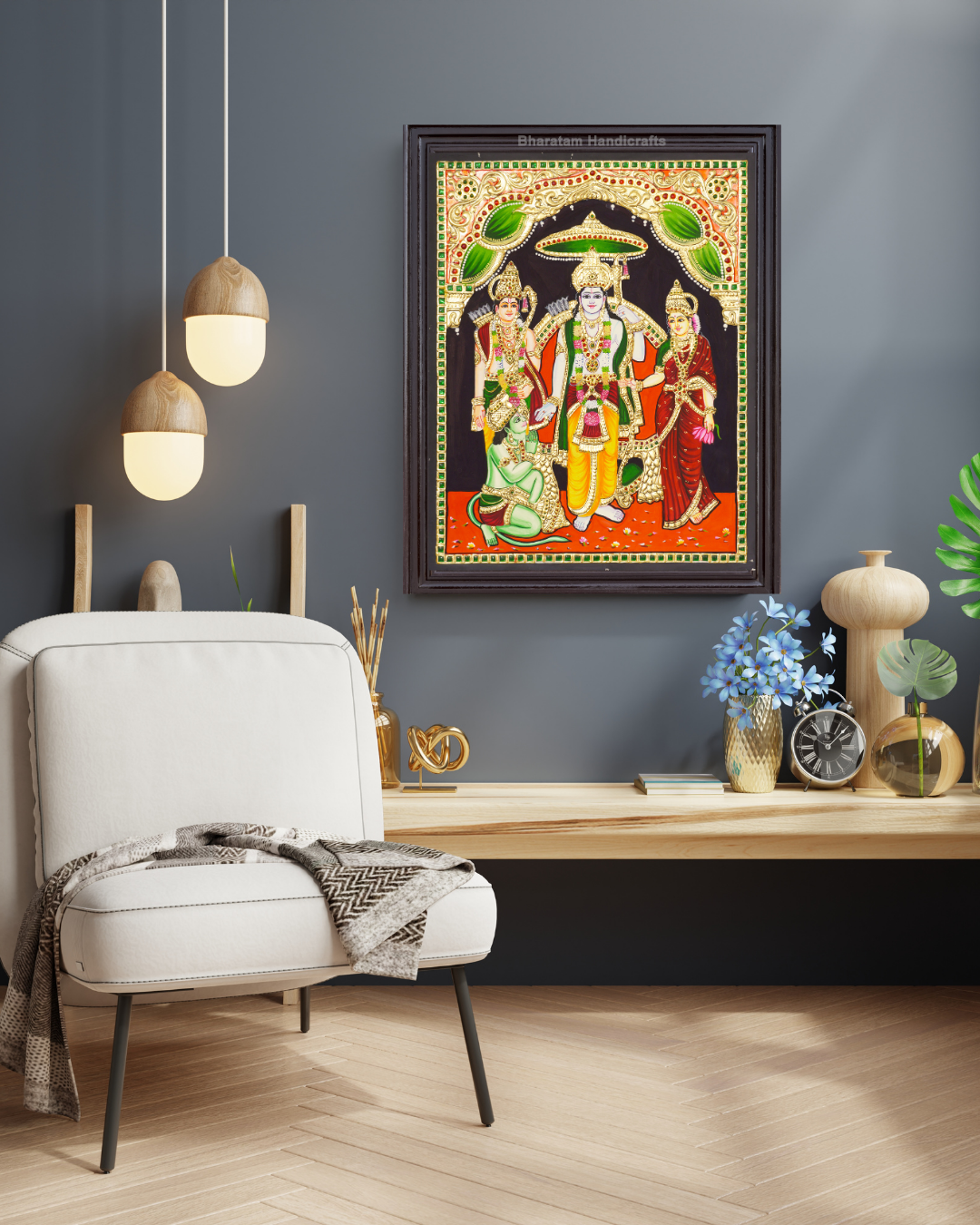 Experience the cultural and spiritual tradition of India with the Ram Darbar Tanjore Painting  Handcrafted by skilled traditional artists, this painting brings auspiciousness and beauty to any home.