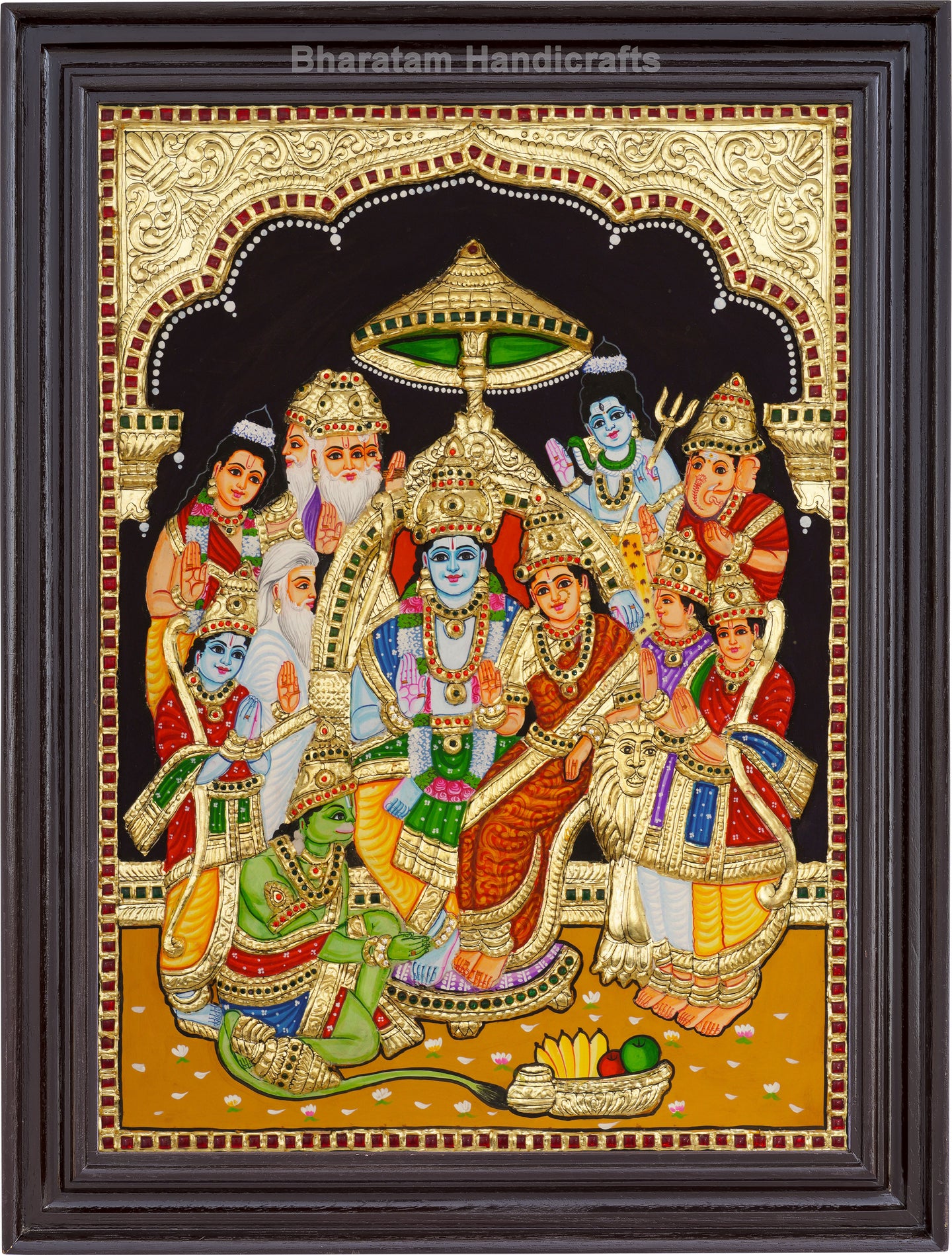 Experience the cultural and spiritual tradition of India with the Ramar Pattabhisekam Tanjore Painting Handcrafted by skilled traditional artists, this painting brings auspiciousness and beauty to any home.