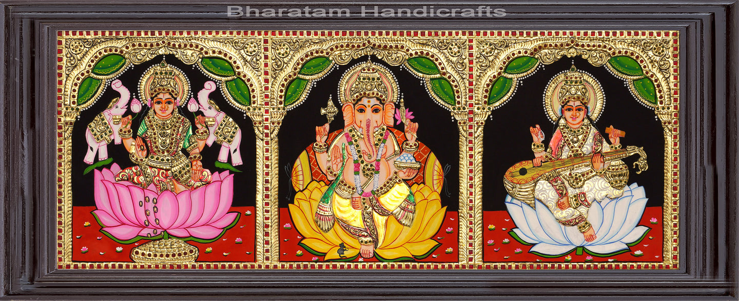 5 Set Ganesha Murugan Balaji Lakshmi Saraswathi Tanjore paintings